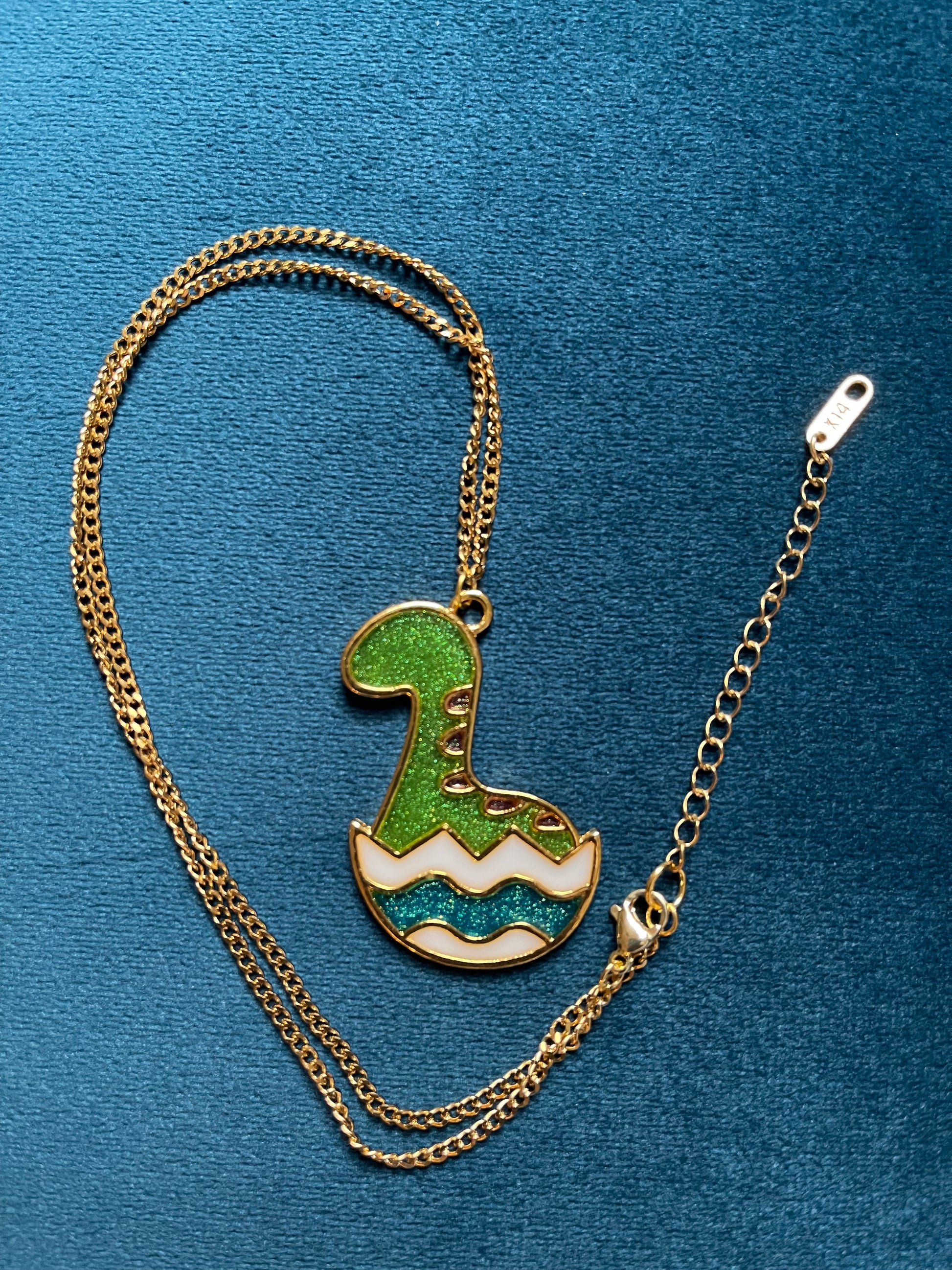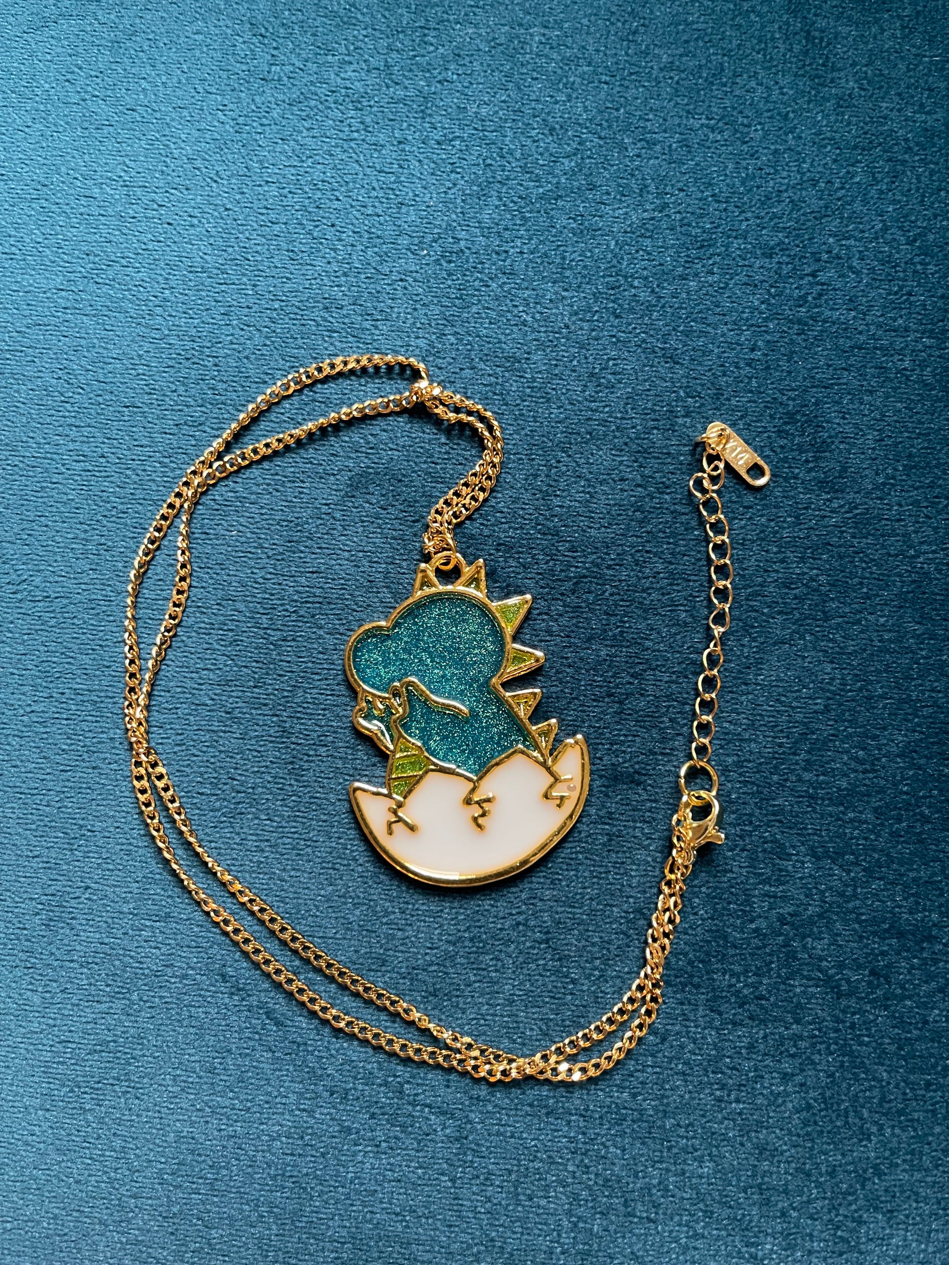 A downright adorable baby dinosaur necklace, customized especially for you! Your choice of baby dino and color will be hand-poured in resin and fitted onto a lovely necklace chain. Shimmering, glittering, and absolutely charming, this necklace will be your favorite outfit's new best friend!