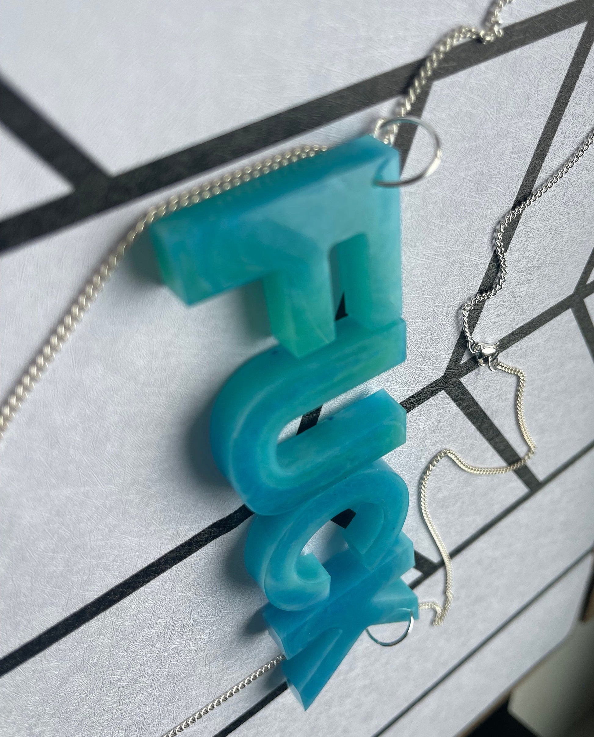 Pictures show the marble, shimmer teal, and galaxy finishes. If you would like to specify more colors or options, please reach out! Want a special necklace chain color, or a different color for each letter? No problem! I want to ensure you receive the absolutely ideal necklace that is perfect for you in every way. Thank you so much for visiting my shop!