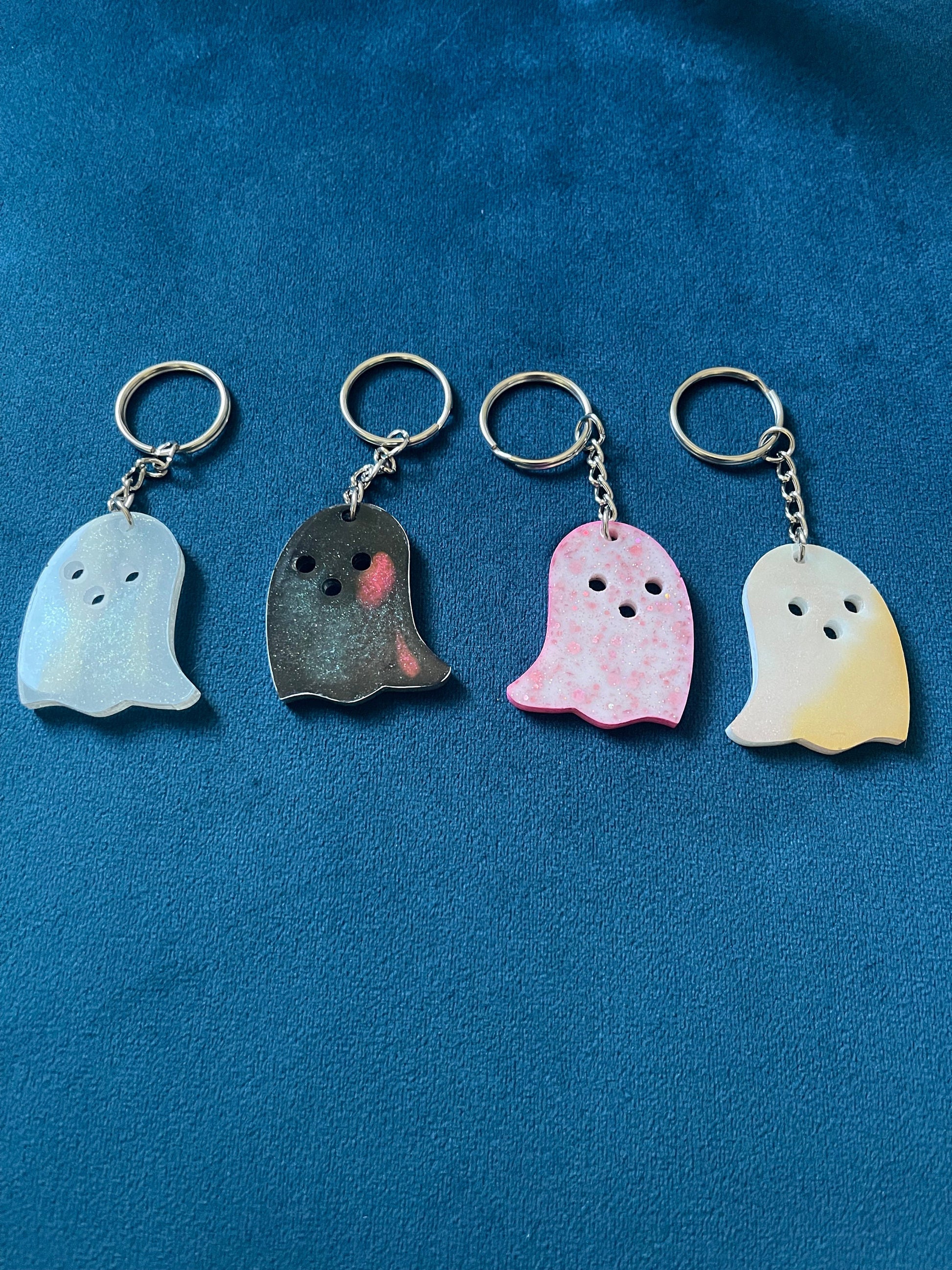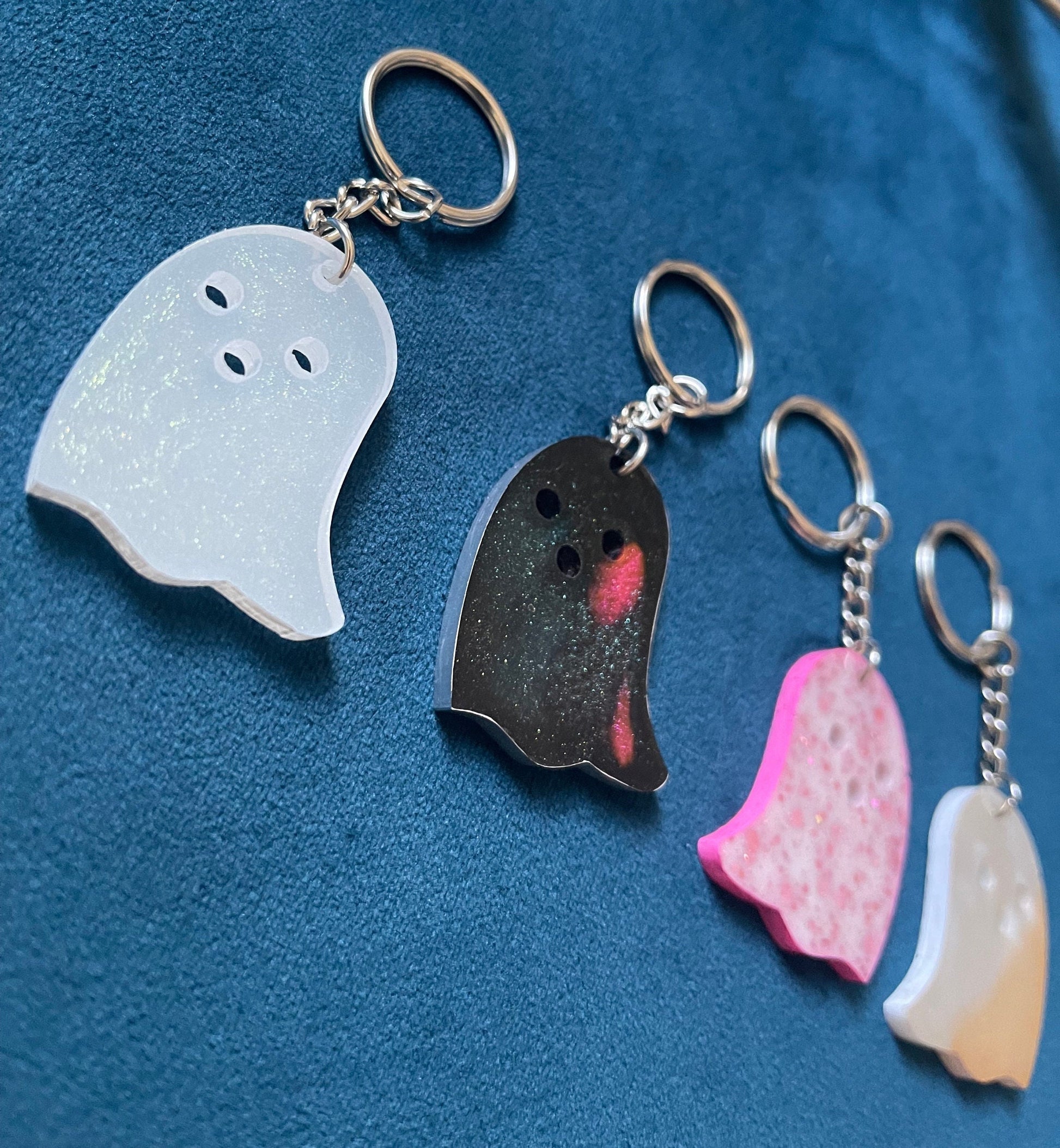 An absolutely spooktacular keychain! This hauntingly cute keychain is the perfect accessory for your keys, backpack, lanyard, or anything that just needs a spooky little pick-me-up. Handmade with resin in the color and finish of your choice, express yourself with this charming little ghosty!