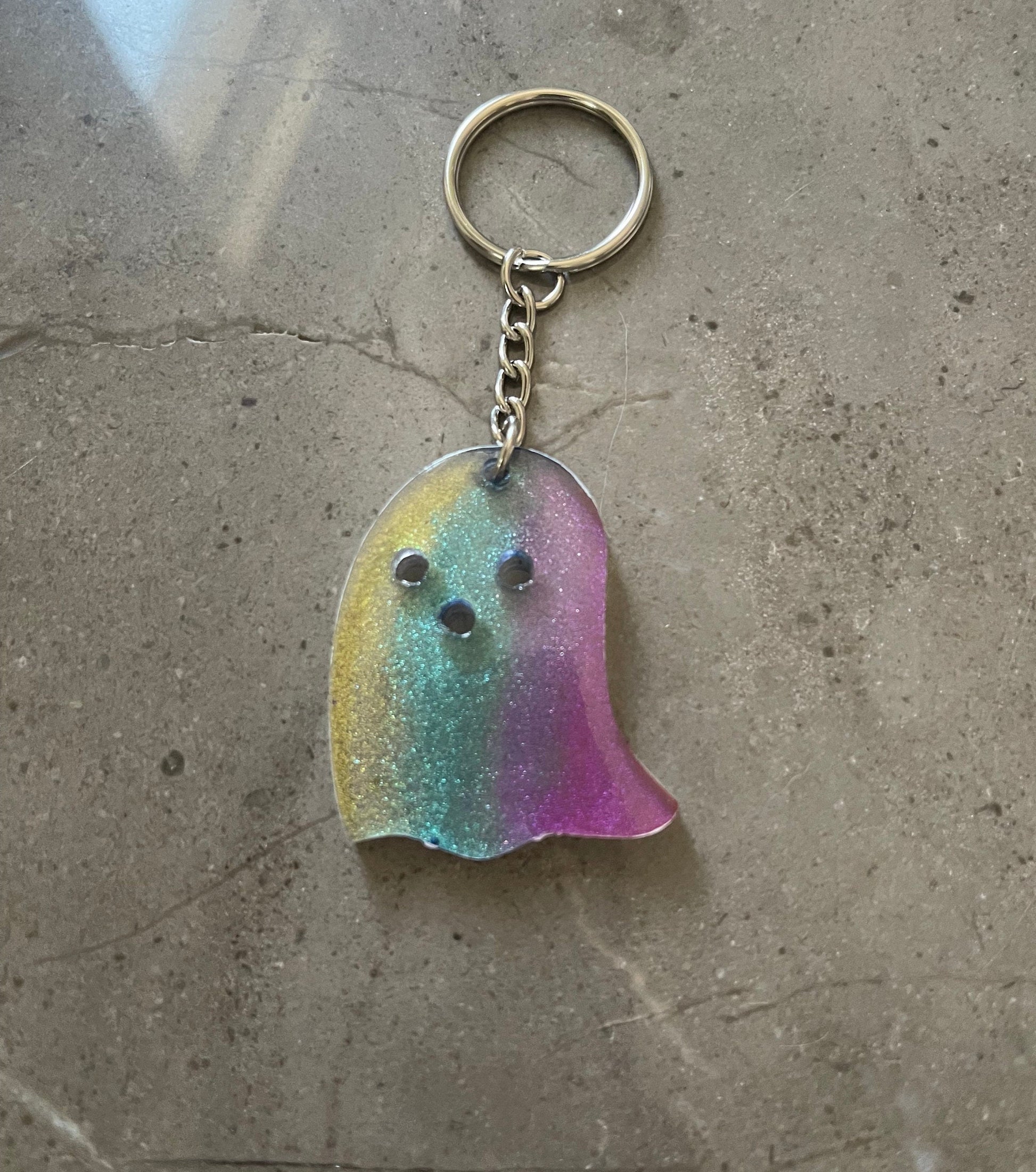 The photos show the ghost in shimmer, galaxy, rainbow, and white with glitter. If you would like to customize any other aspect, such as multiple colors or letter details, please leave a note. I want to ensure you receive your absolutely ideal ghost keychain!