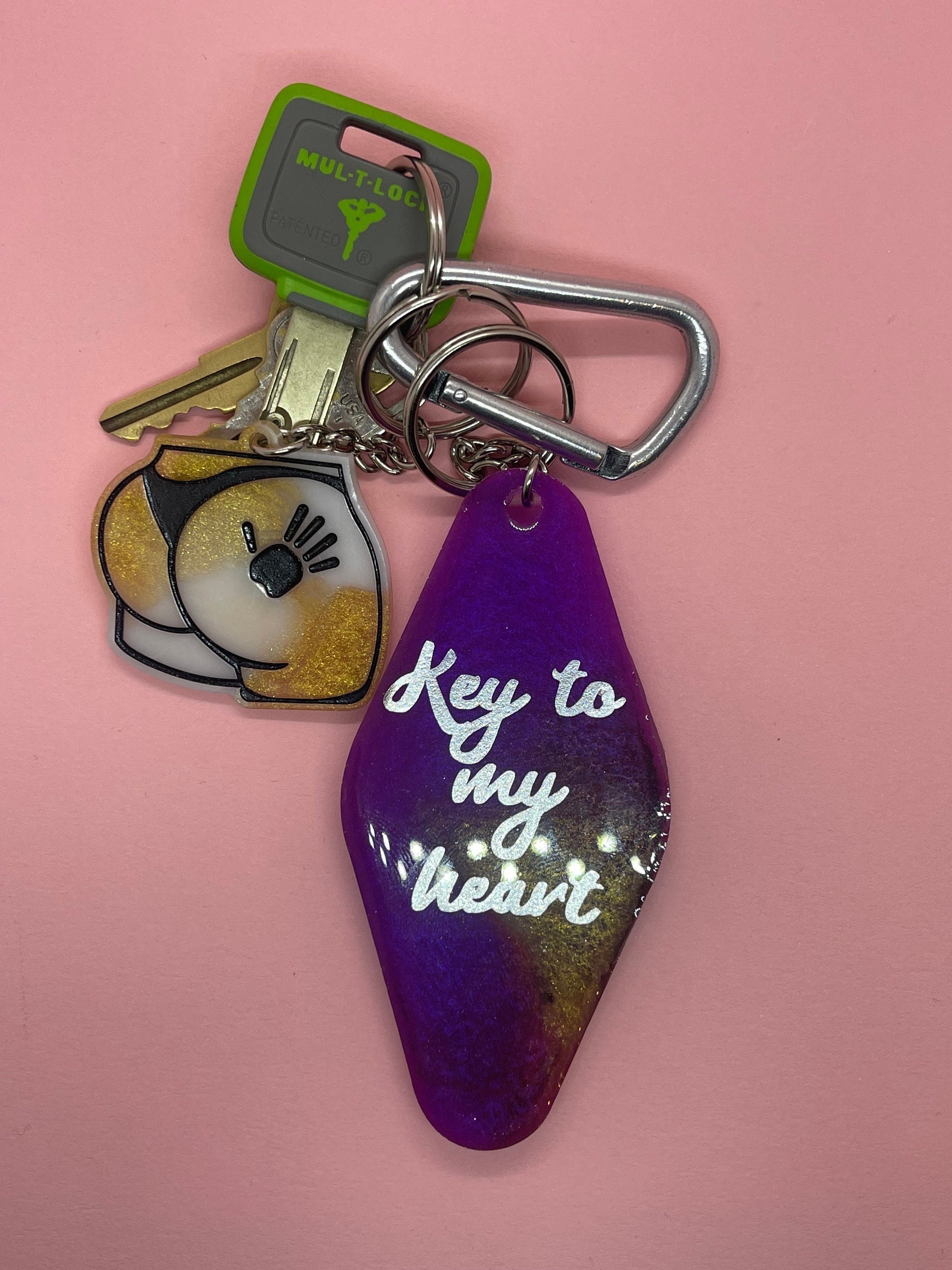 The perfect personalized keychain to unlock your unique style. This motel-style keychain is handmade with resin, and each one is an absolute one-of-a-kind. With the color, finish, and phrase/design completely up to you, this keychain can open any door you desire.