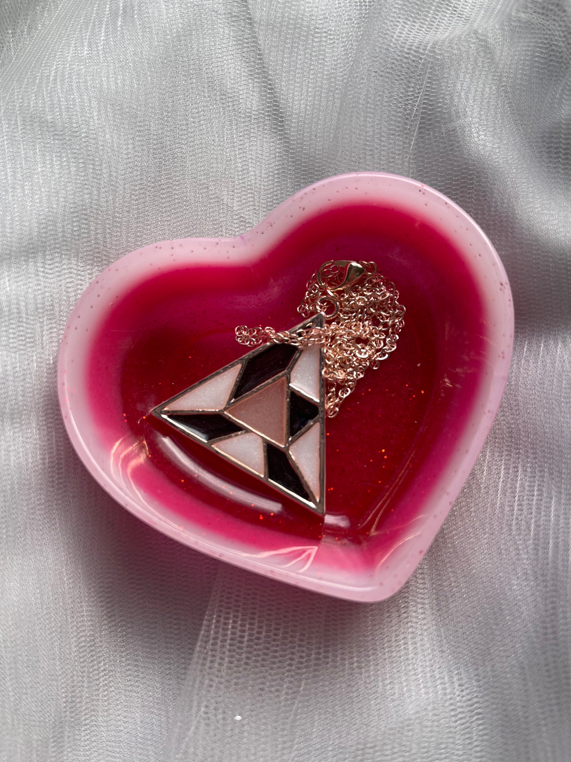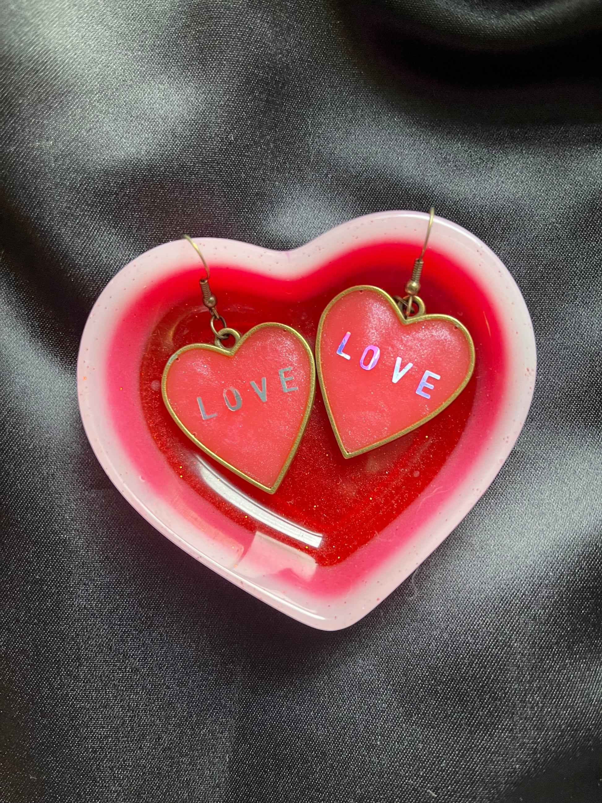 A handmade resin ring and trinket dish for all your sweetheart needs! The perfect romantic accent piece, this heart-shaped trinket dish can be customized to your heart's desire