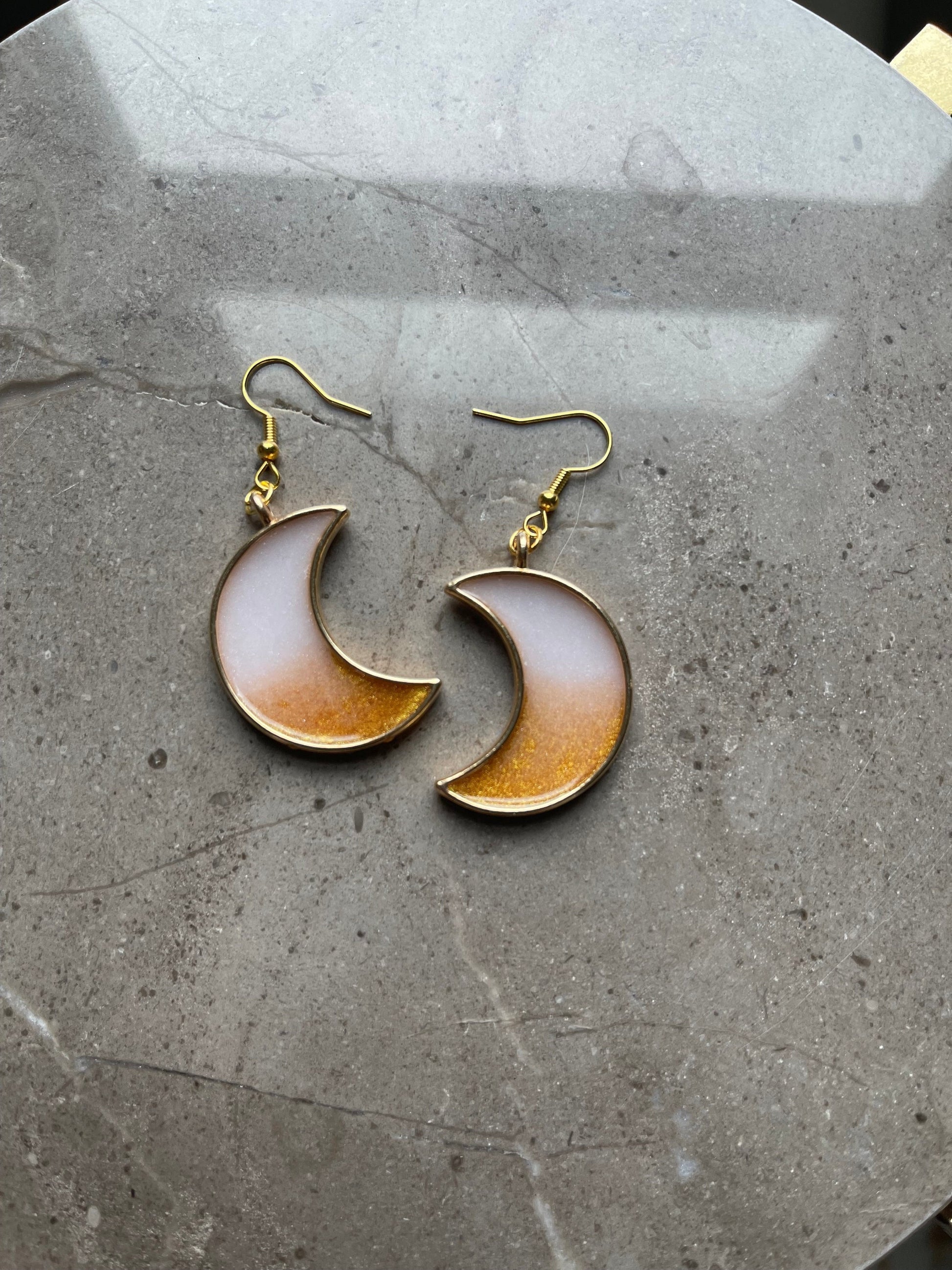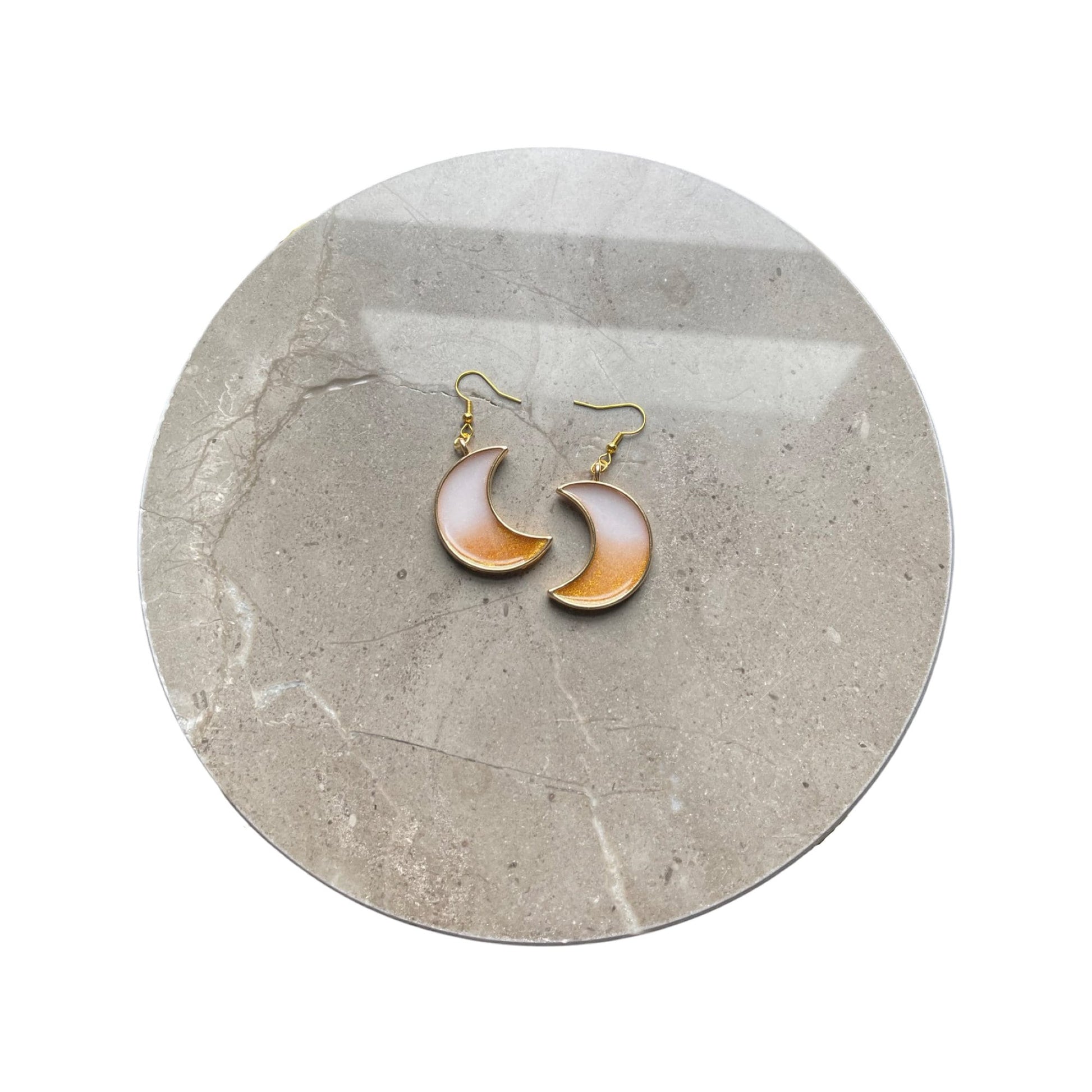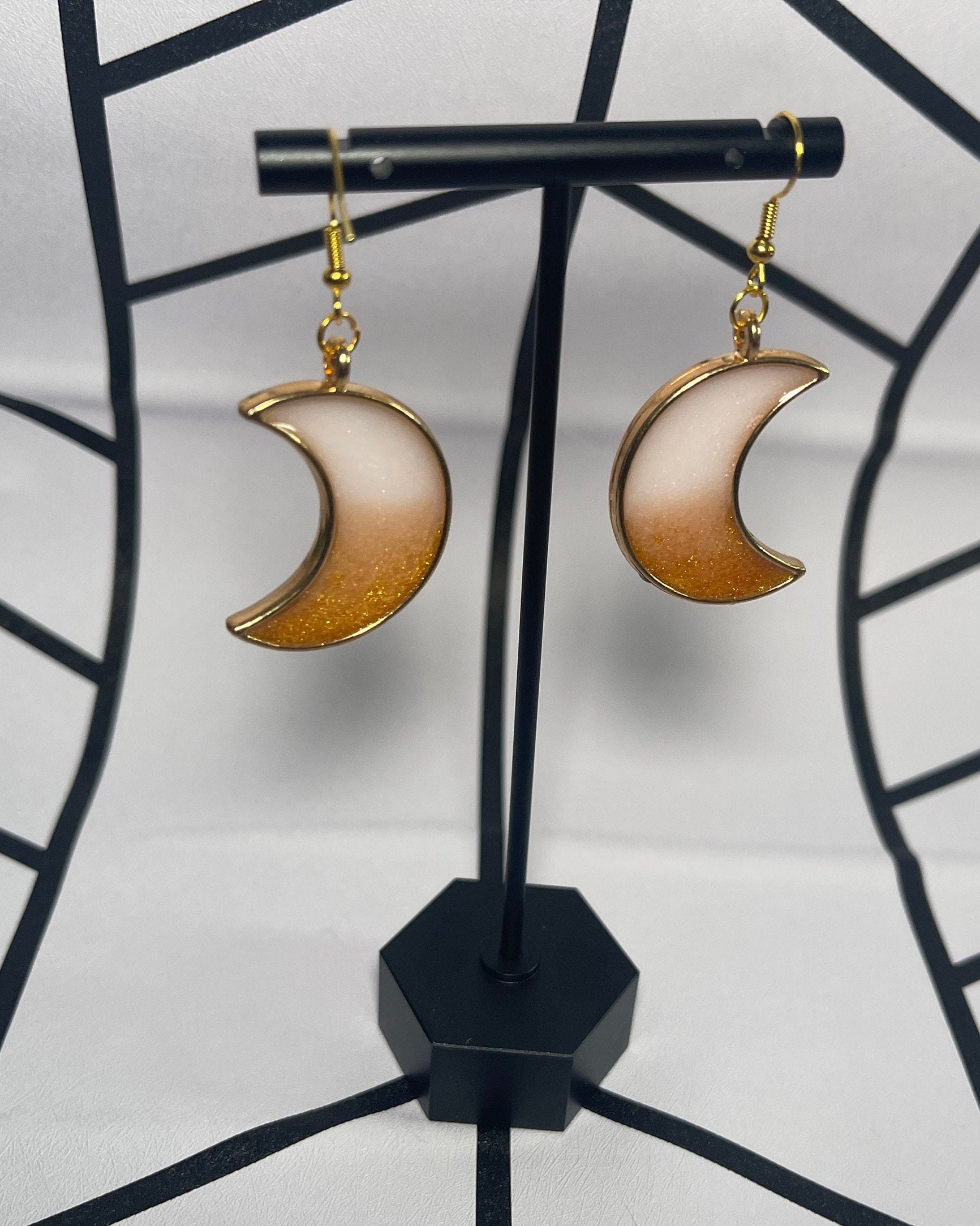 A gorgeous set of crescent moon earrings, customized to be your perfect pair! Each pair is handmade to order with any color or finish your heart desires.
